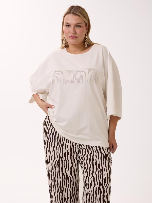 Объемный блузон прямого кроя. Вырез горловины круглый. Плечевой