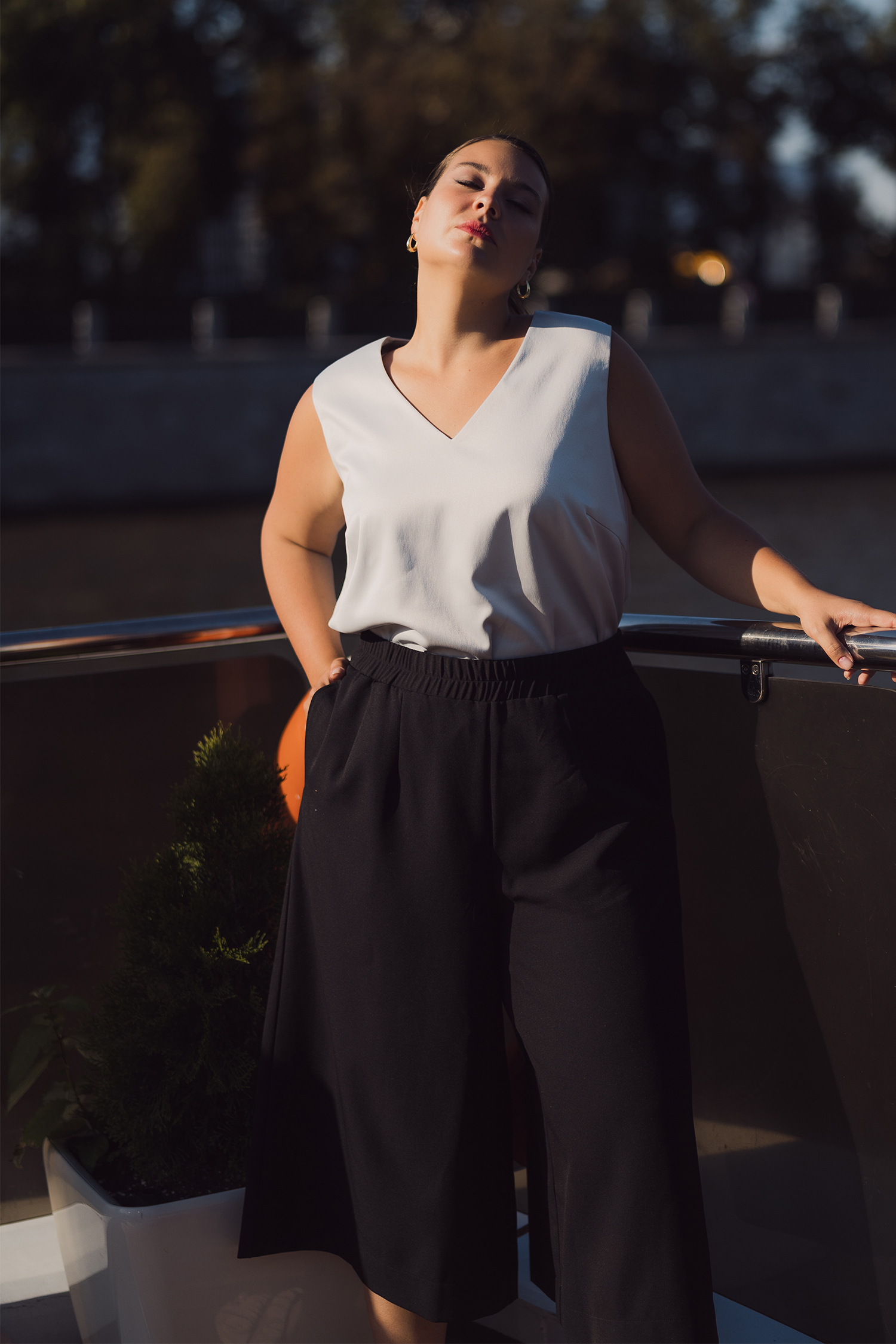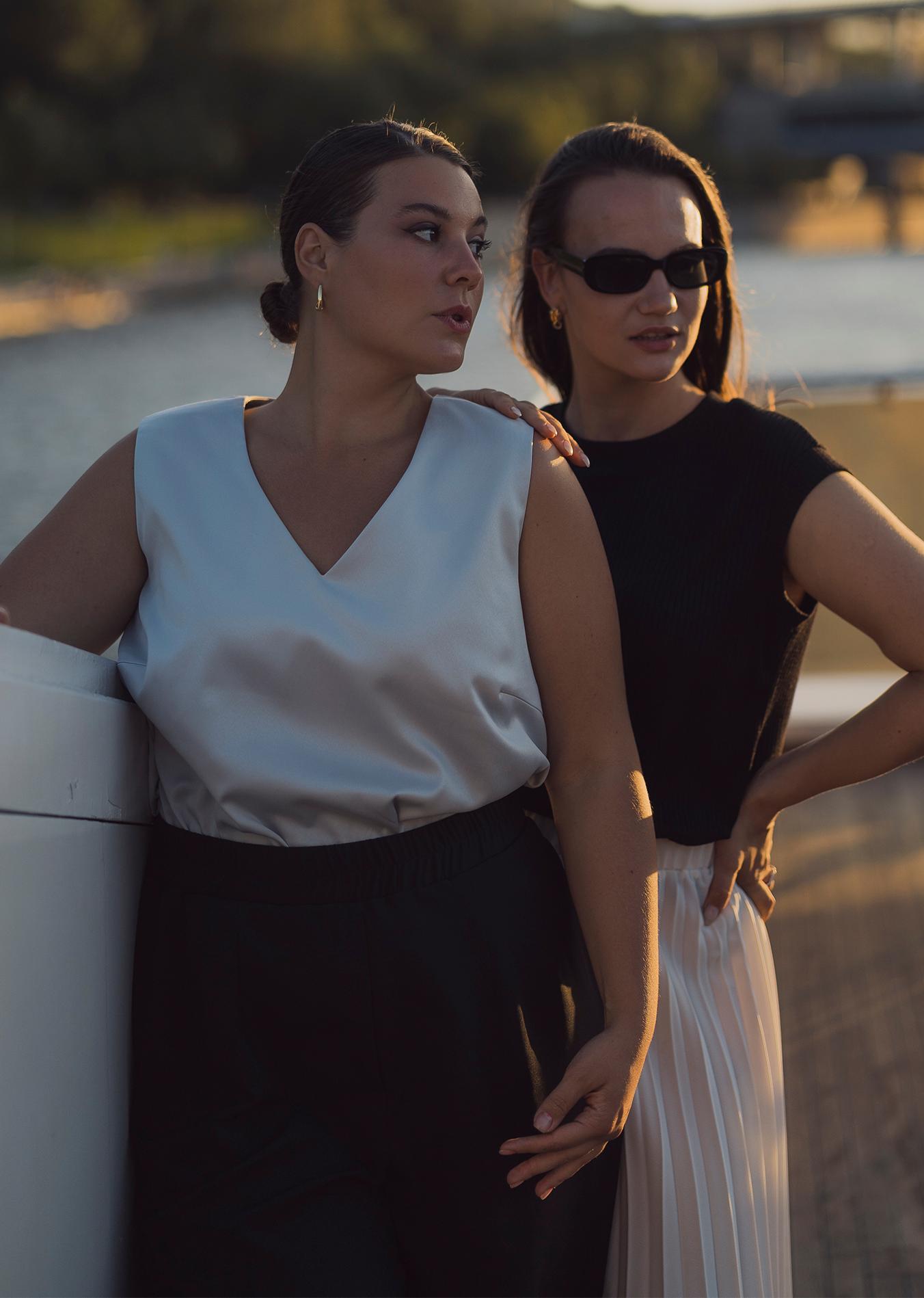 Топ прямого силуэта без рукавов. Вырез горловины V-образный. Длина до бедер. Выполнен из вискозосодержащего атласа в черном и св. сером цвете.