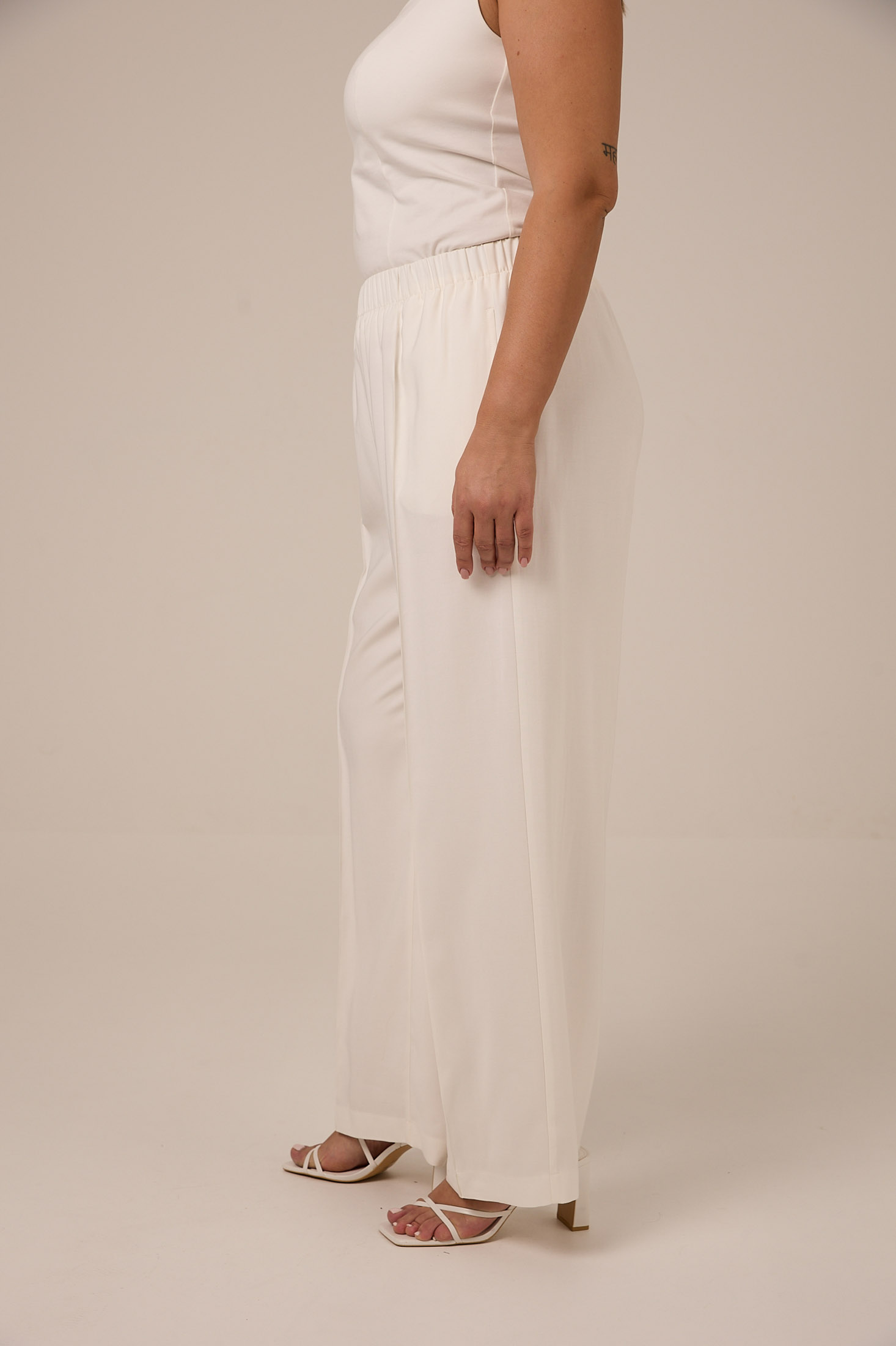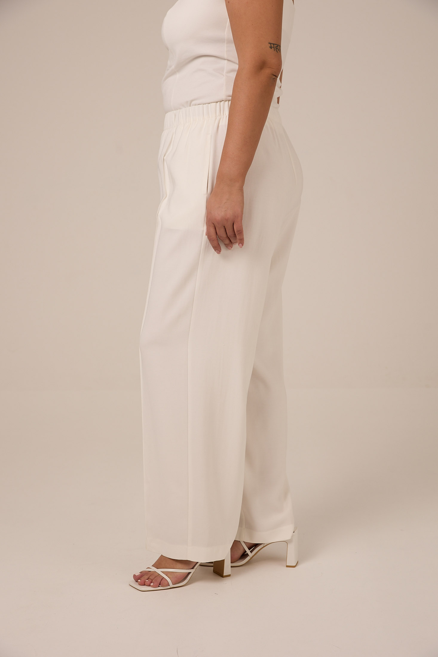 Брюки прямого кроя, умеренно широкие по всей длине, с отстроченными стрелками. Пояс с эластичной тесьмой внутри. Боковые карманы в швах на передних половинках. Выполнены из тенселя в черном, синем и молочном цветах.