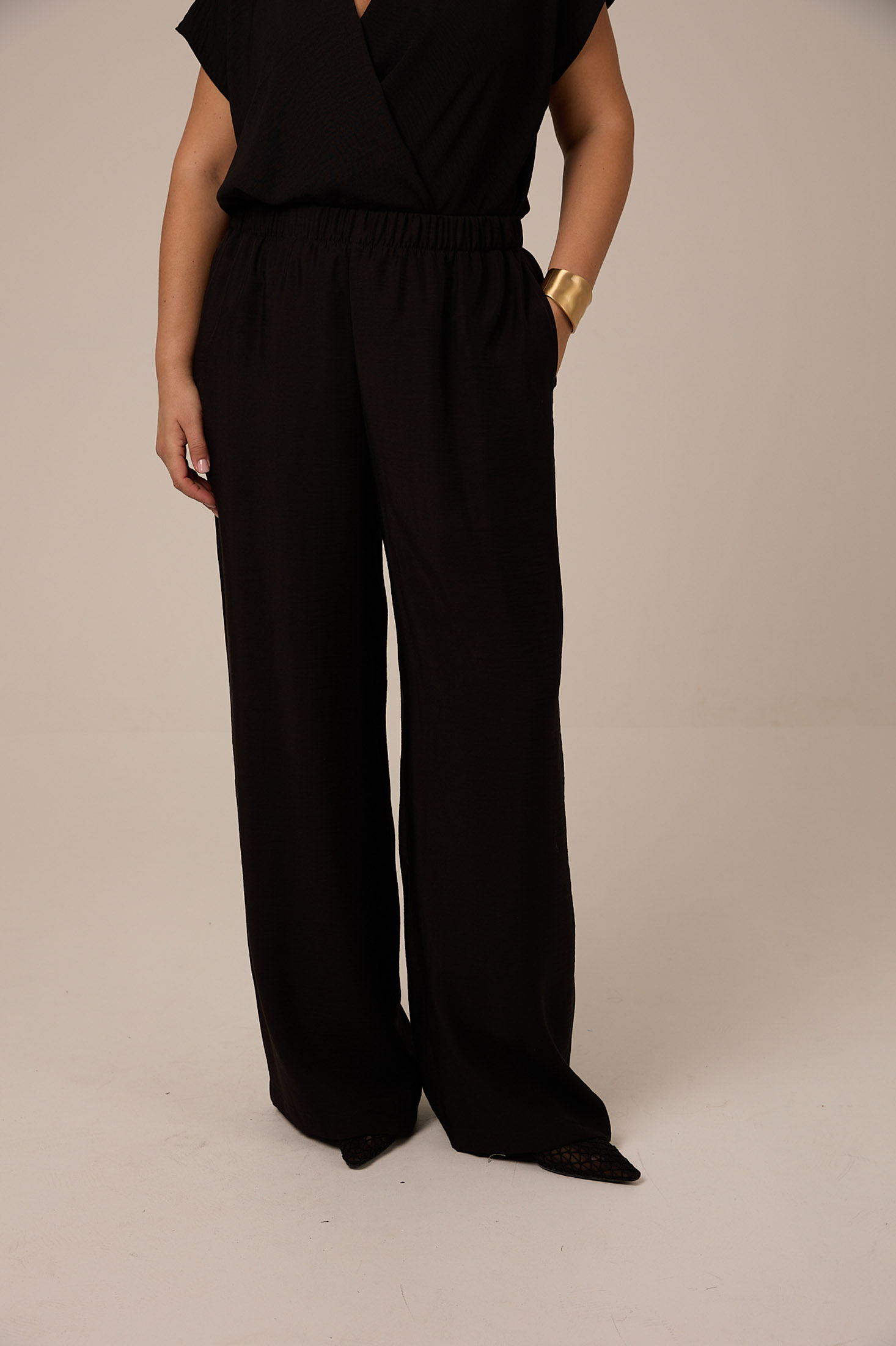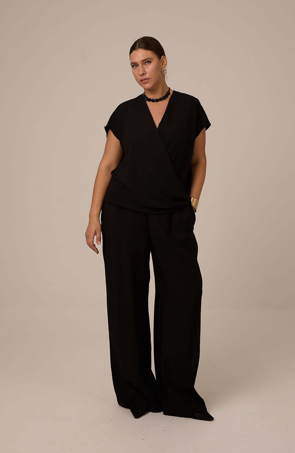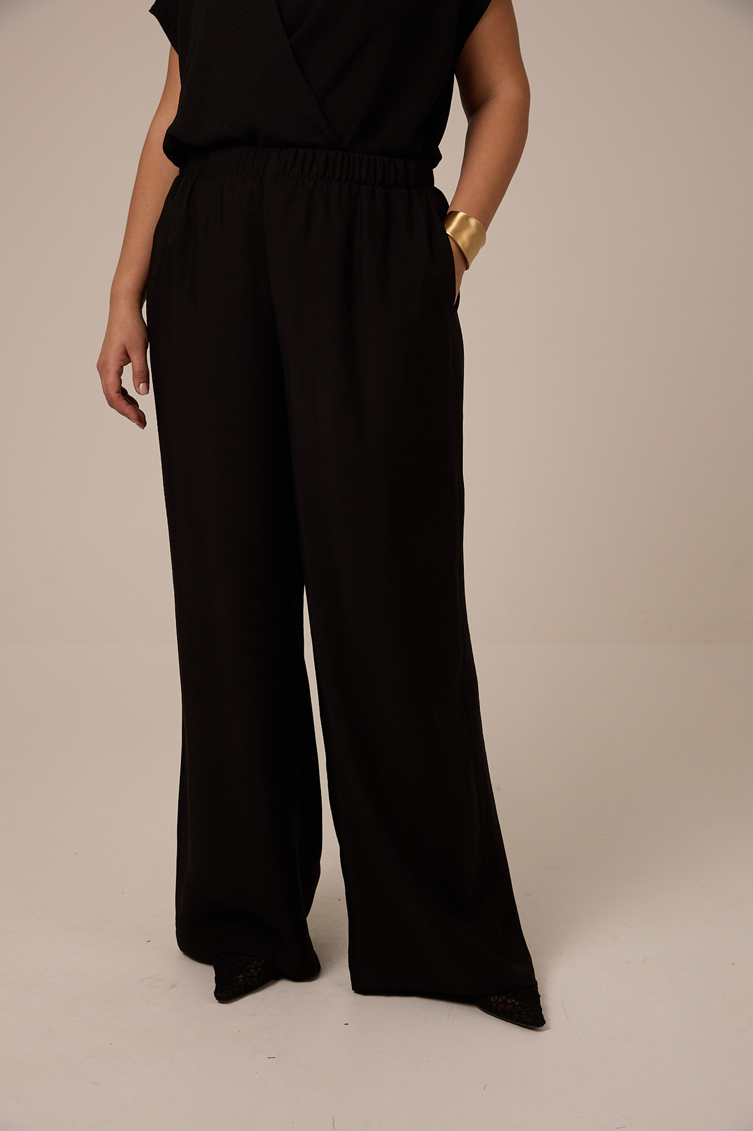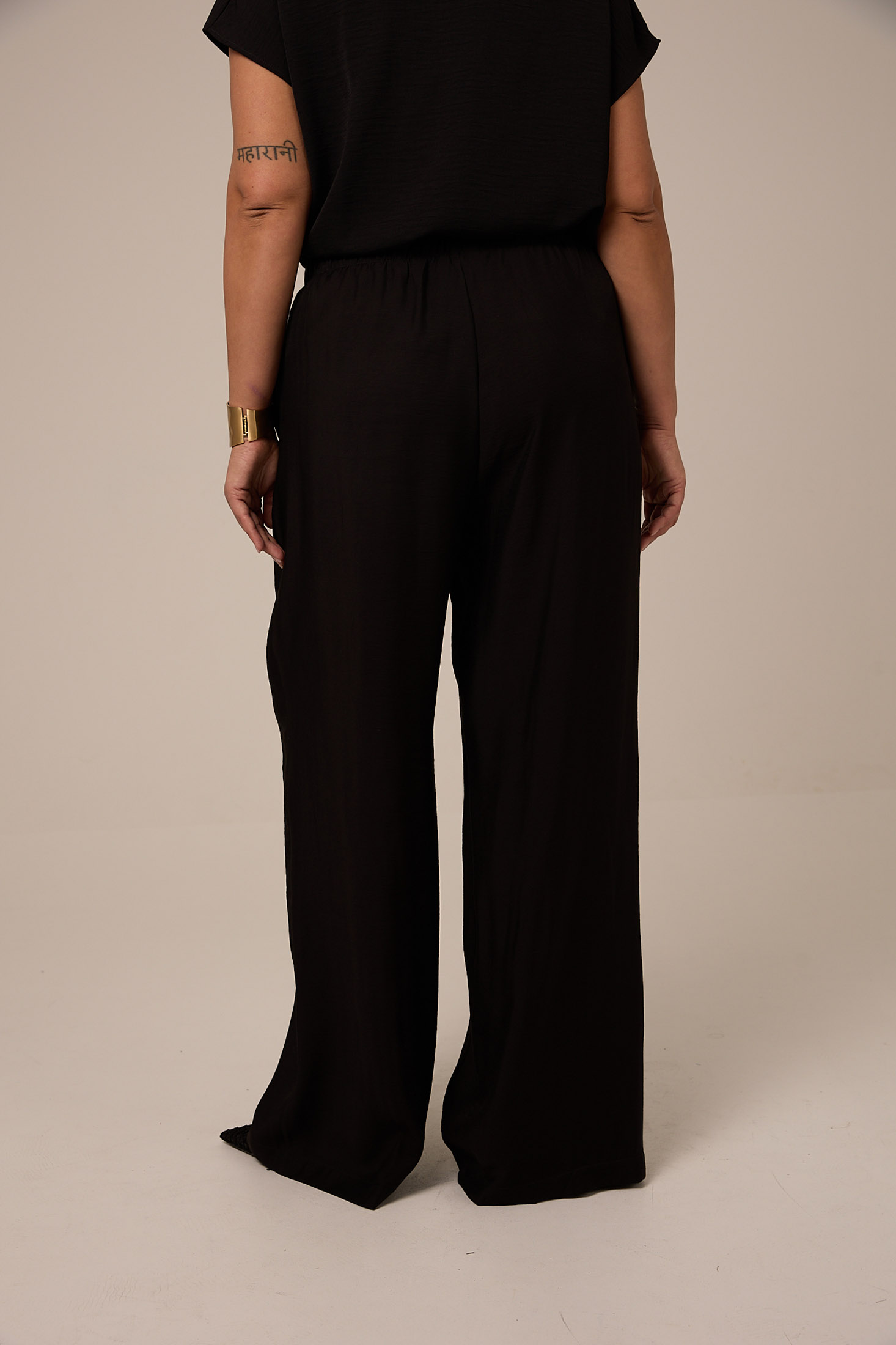 Брюки выполнены из струящейся вискозной ткани в двух цветах: черном и белом