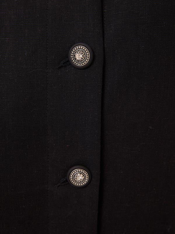 Практичность: Застегивается на пуговицы обеспечивает надежность и возможность регулировки. Выполнен из смесового льна в классическом черном цвете — универсально и легко сочетается с другими вещами. Без подкладки — подходит для теплых сезонов и комфортен в носке.