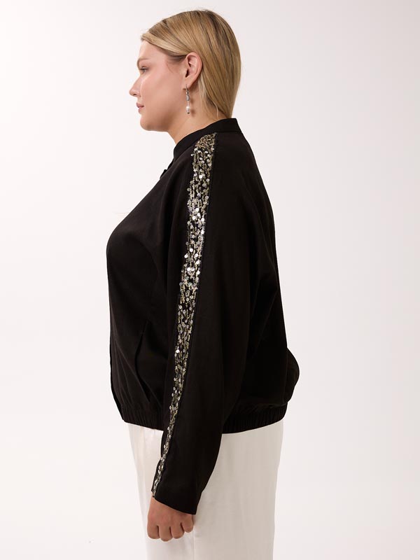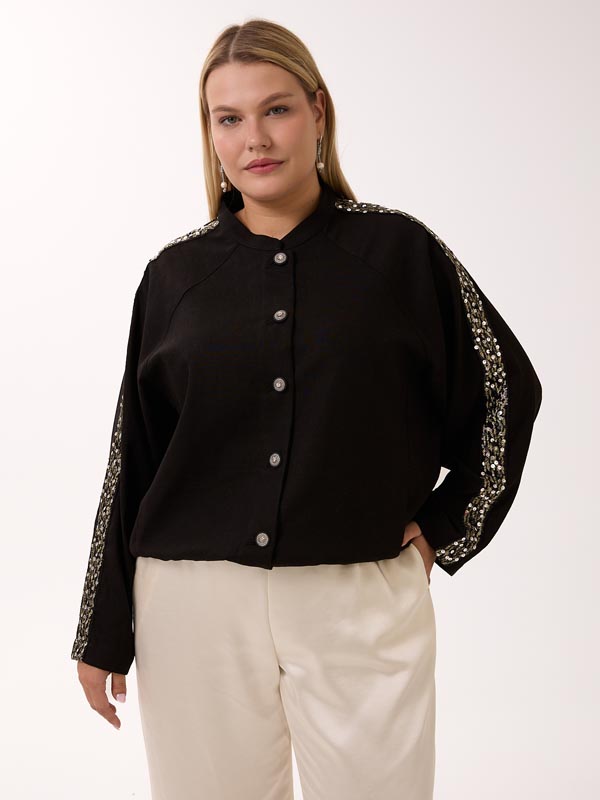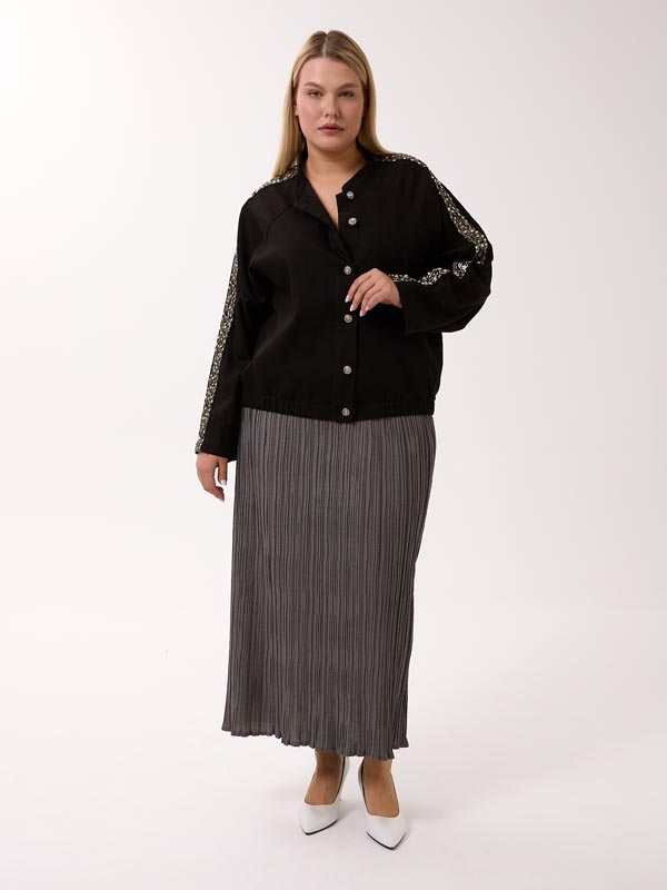 Свободный объемный силуэт, идеально подойдет для комфортной носки и стильного образа. Рукава реглан — создают удобную посадку и оригинальный внешний вид. Небольшая стойка воротника подчеркивает аккуратность и элегантность. Детали и отделка: Нижняя часть изделия на резинке — создает эффект сборки и подчеркивает линию талии. По рукавам выполнена декоративная отделка в виде лампаса — оригинальный акцент, дающий изюминку гардеробу.