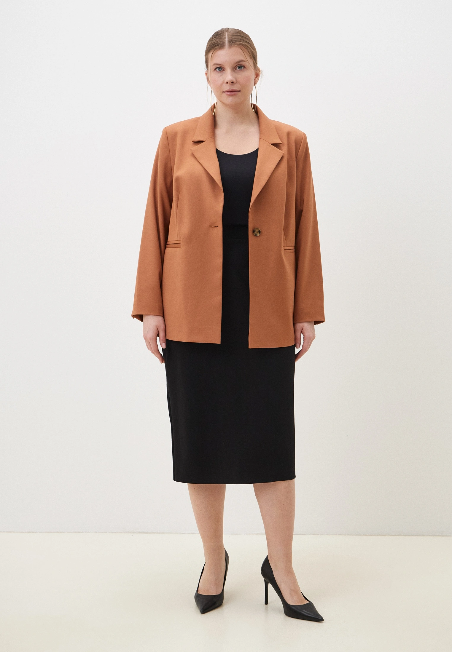 Жакет полуприлегающего силуэта на подкладке. Воротник «пиджачного» типа с лацканами. Рукава втачные, двухшовные со шлицей внизу. Боковые карманы прорезные «в рамку», расположены горизонтально. Жакет застегивается на пуговицу.