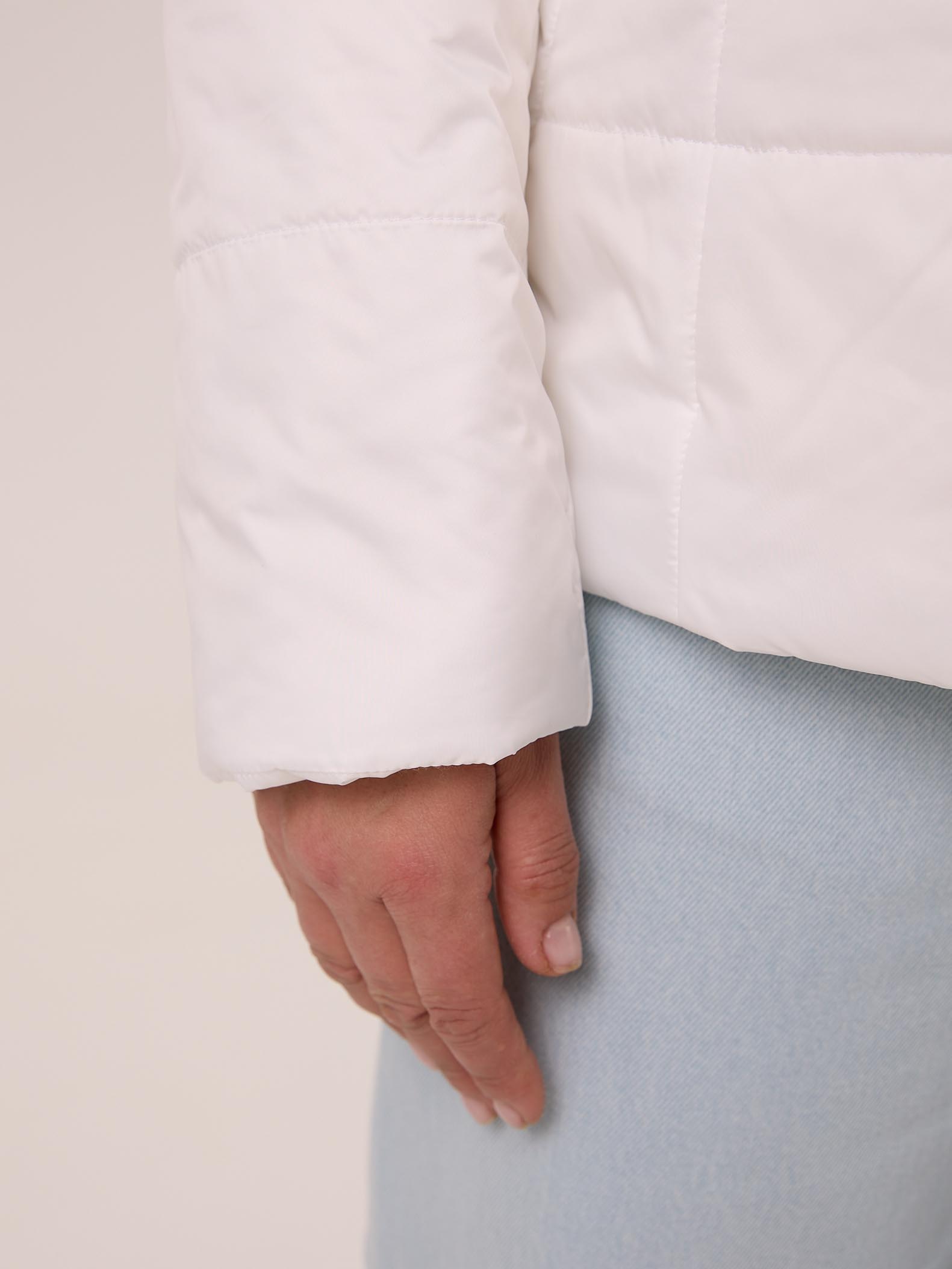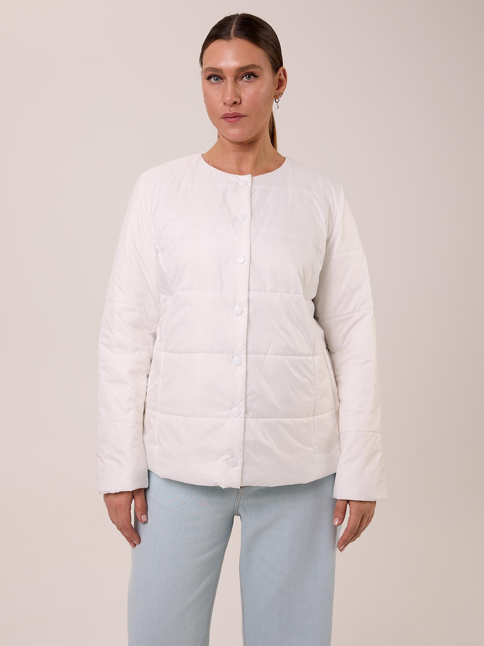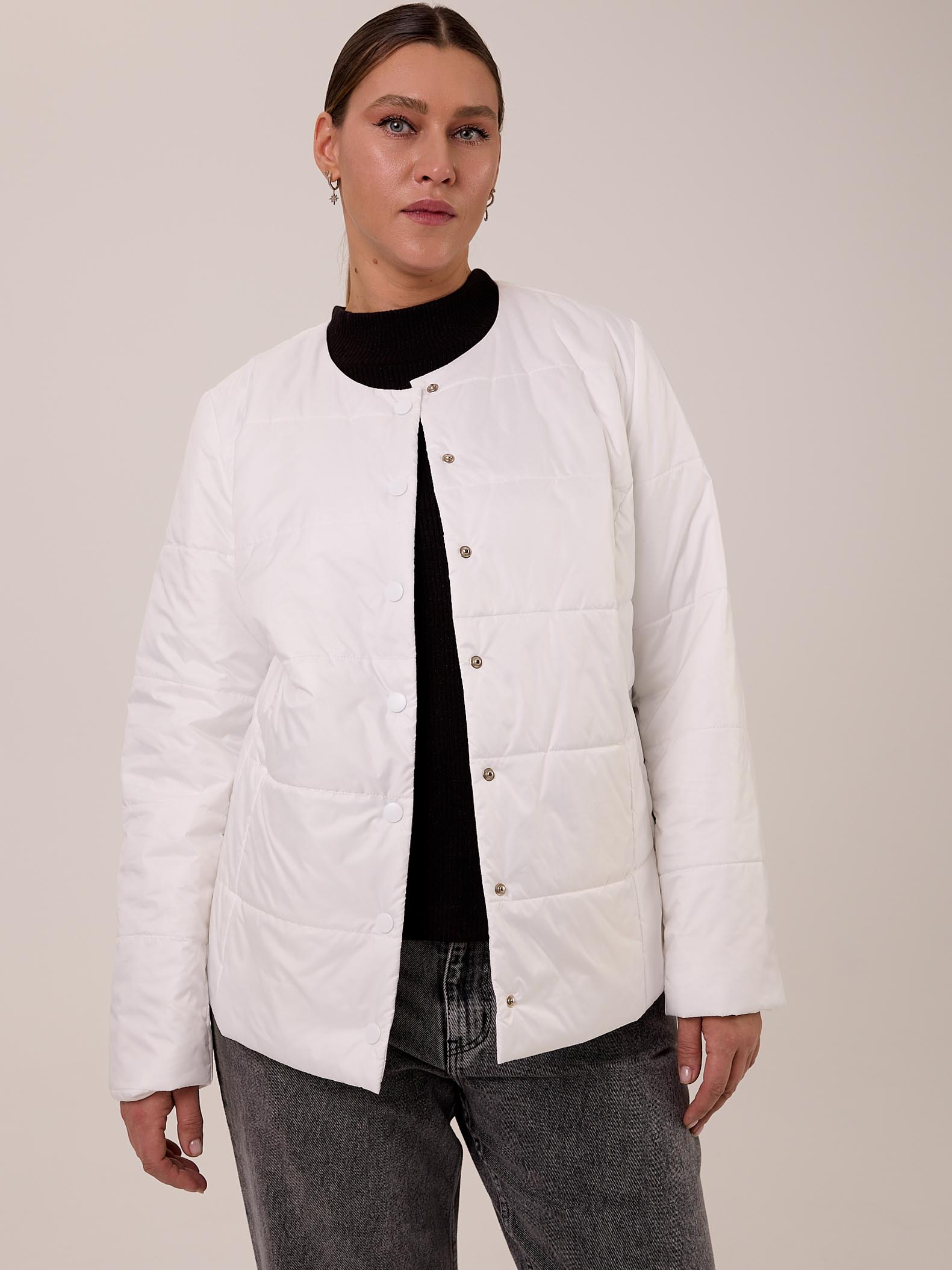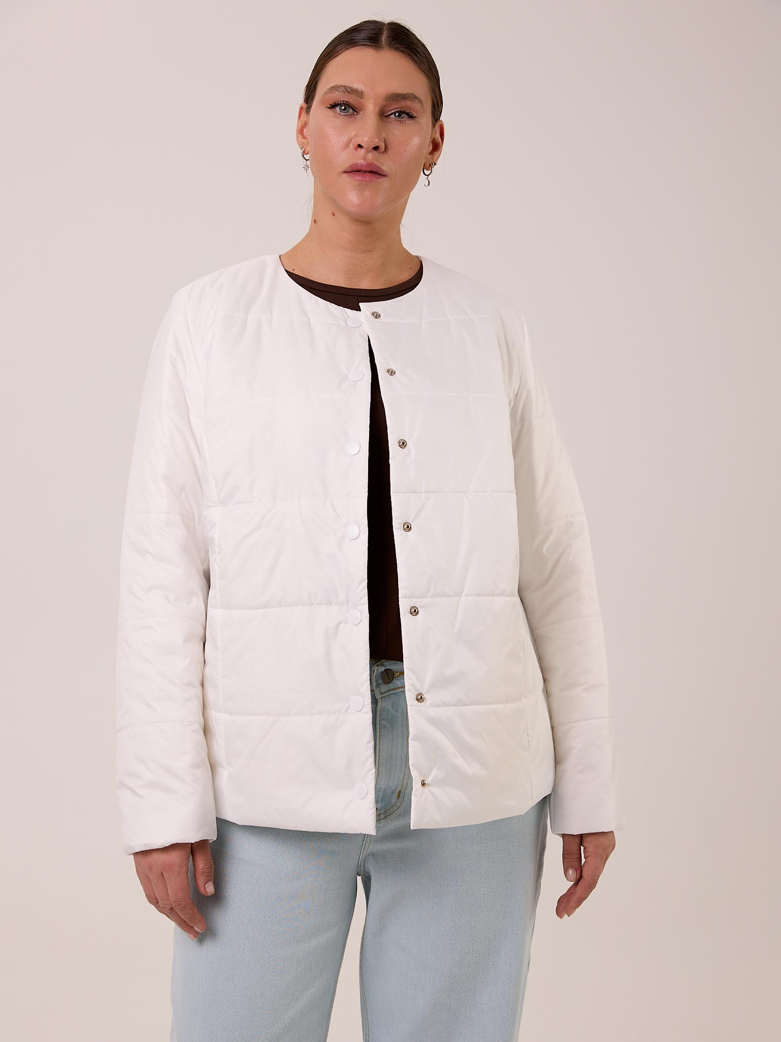 Облегченная полуприлегающая куртка, длиной чуть ниже линии бедер, без воротника выполнена из тонкой курточной ткани с водоотталкивающей пропиткой, рельефы на полочках деликатно подчеркивают фигуру, втачной рукав, карман – листочка, застежка на кнопки.