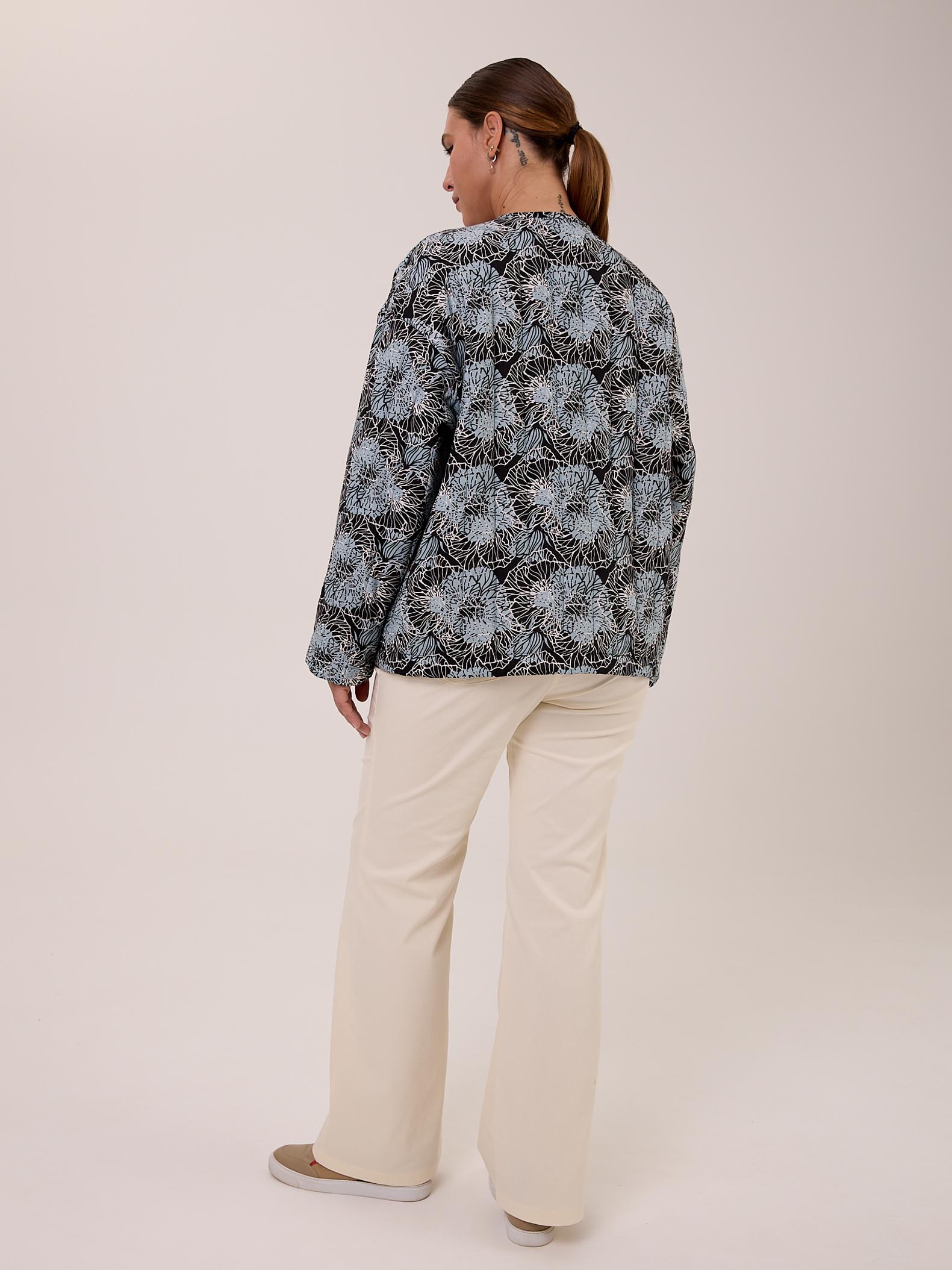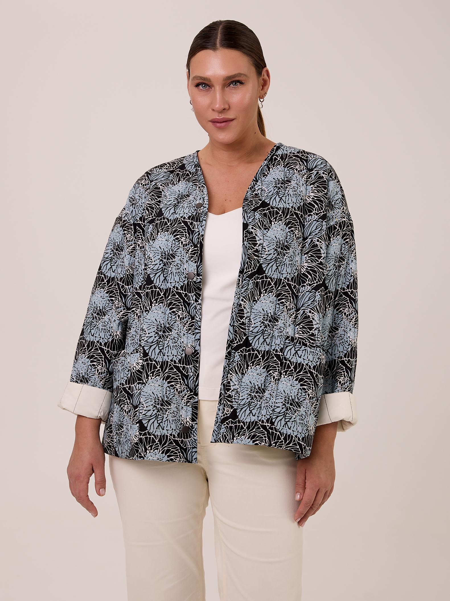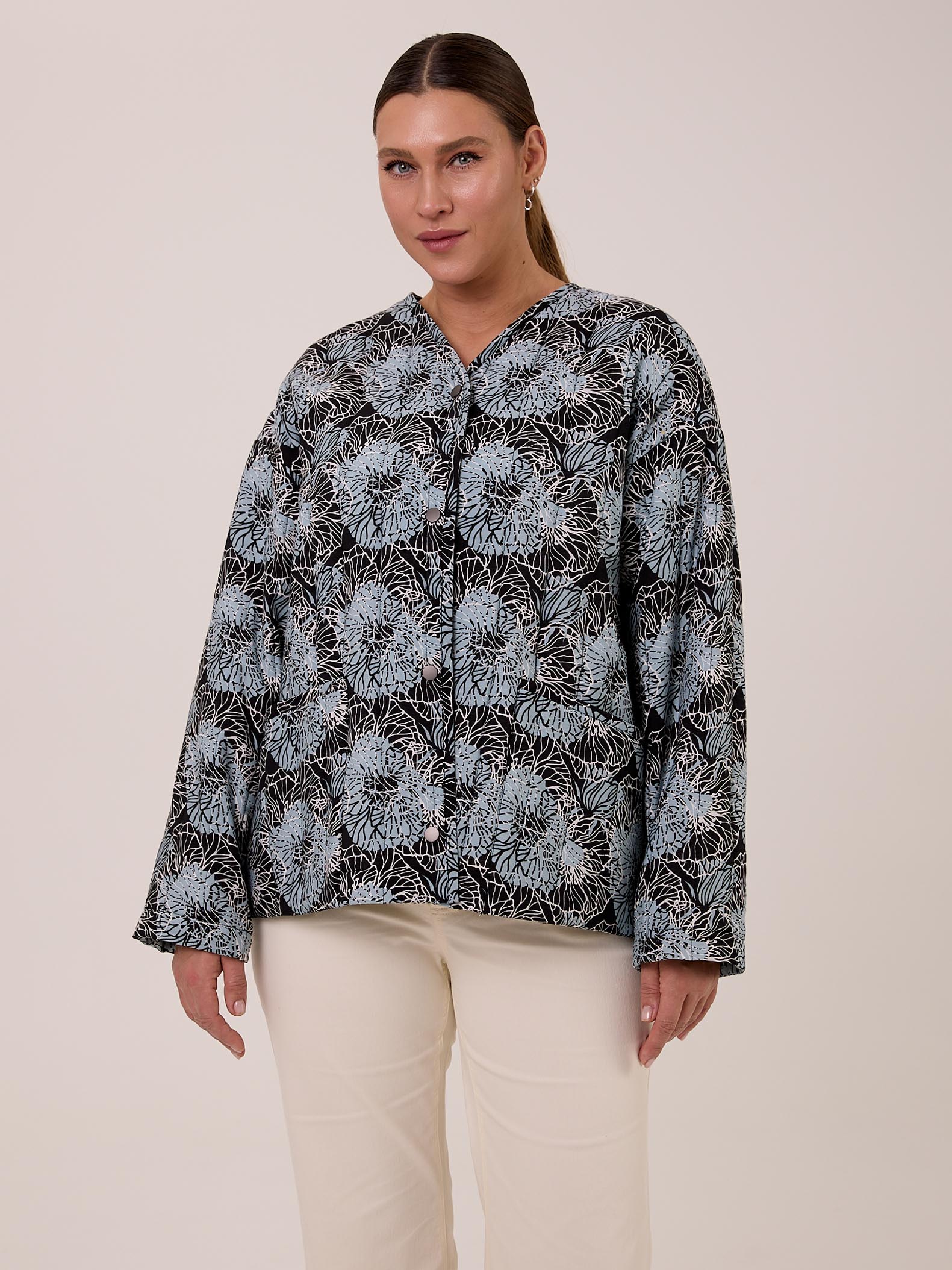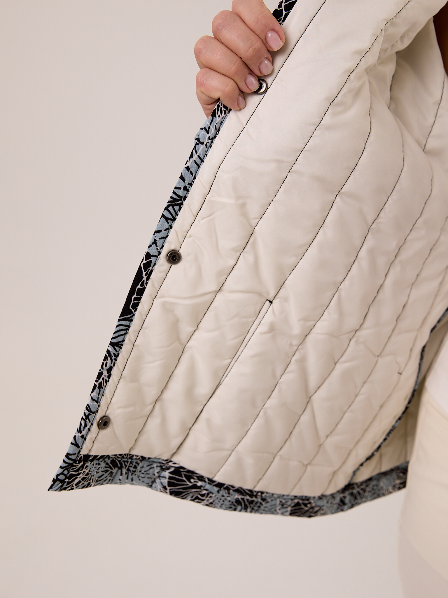 Облегченный стеганный жакет прямого силуэта и средней длинны для теплой весны или прохладного летнего вечера выполнен из стеганного полотна с водоотталкивающей пропиткой. Застегивается на кнопки и имеет карман «листочка».