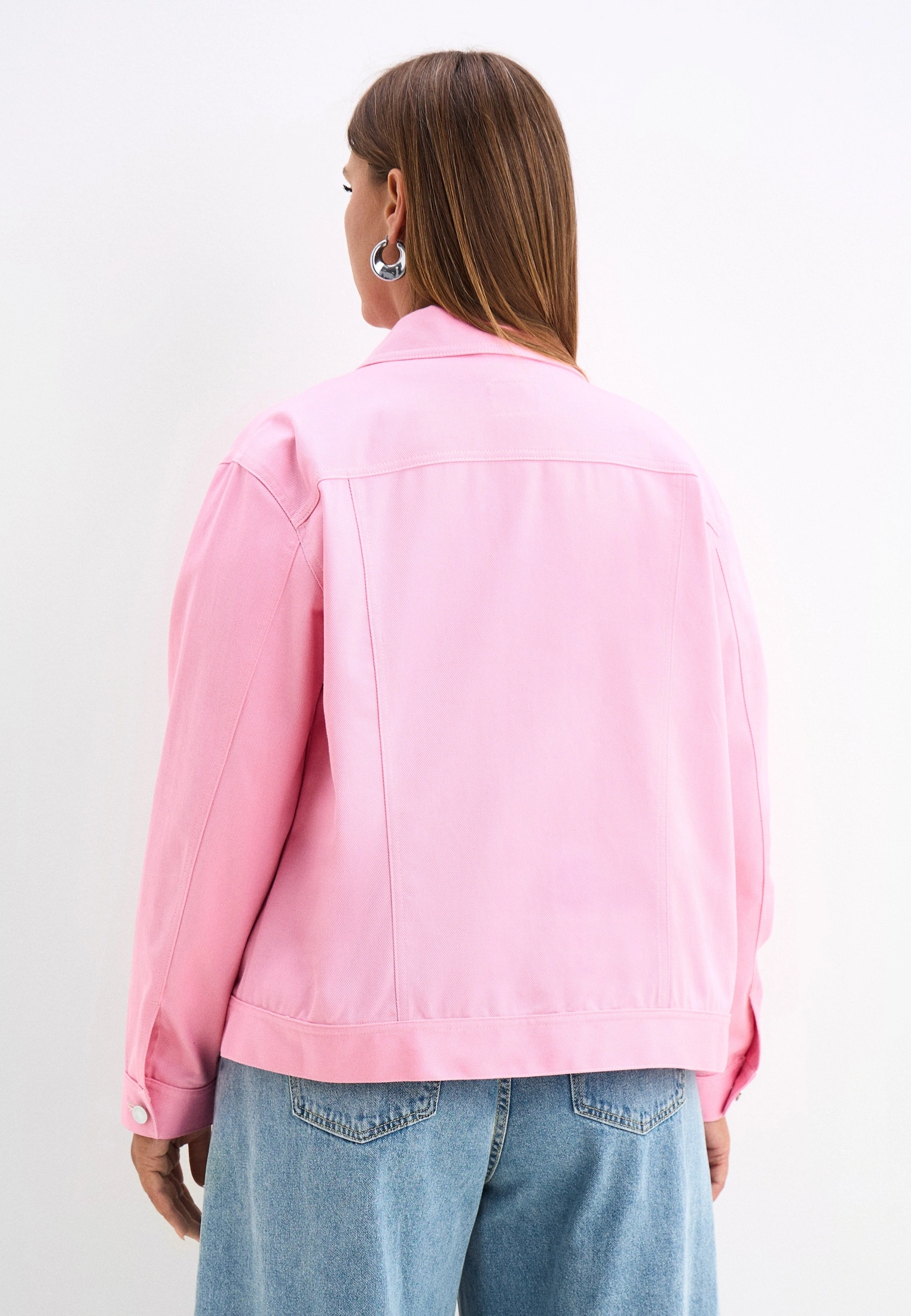 Куртка прямого кроя, длиной до бедер. Воротник отложной. Плечевой пояс приспущен, рукава двухшовные с манжетами. На спинке и полочке отрезные кокетки. На модели выполнены нагрудные карманы с клапанами и боковые карманы в рельефах. По низу изделия притачной пояс. Куртка и манжеты рукавов застегиваются на болты и петли. Модель выполнена из 100% хлопка в молочном, желтом и розовом цветах.