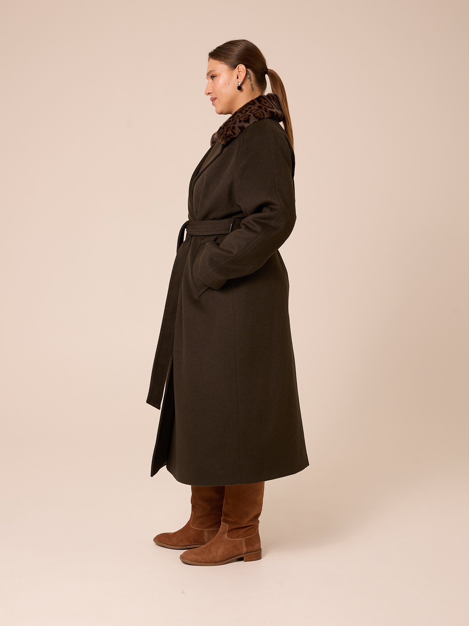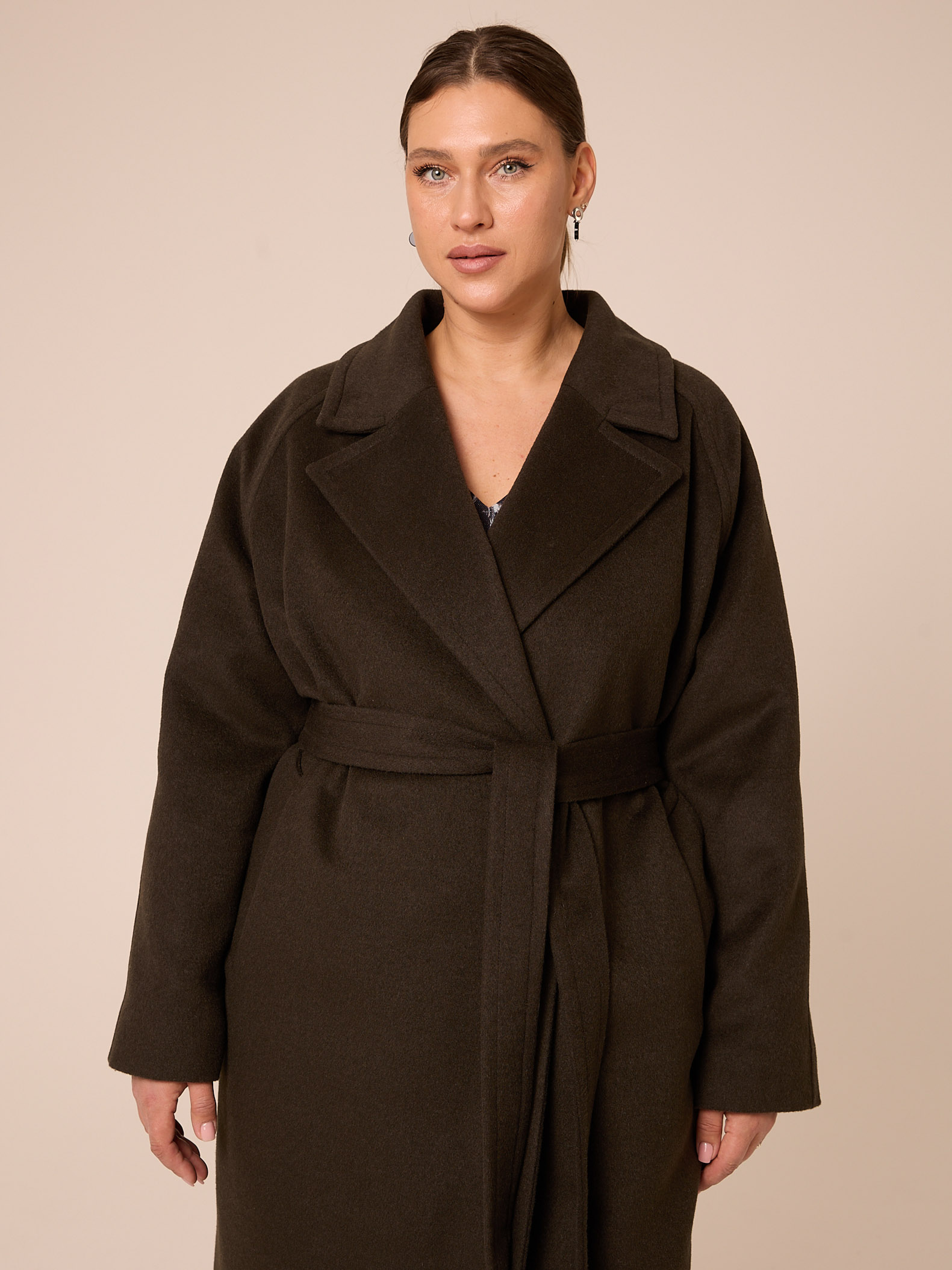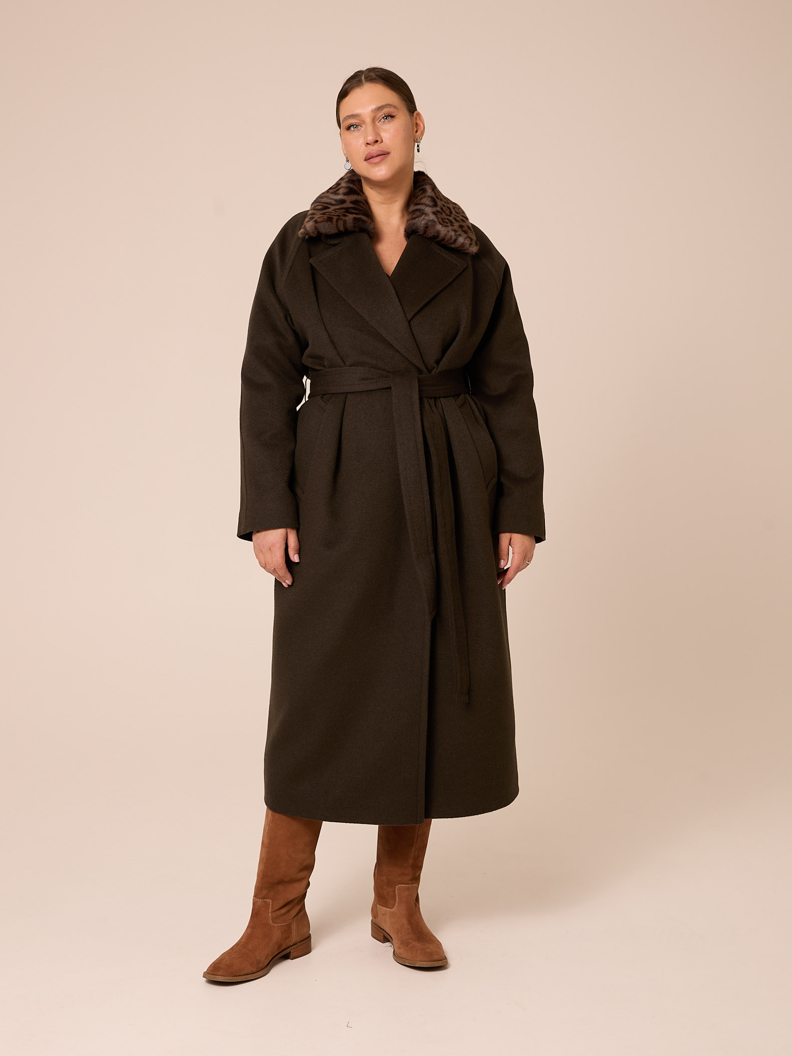 Утеплитель термофин «микро» 60 гр/м2 (новая разработка, более тонкий вариант термофина 60гр/м2). Длинное драповое пальто, свободного прямого кроя, с поясом. Воротник «английский» с лацканами, воротник из эко-меха съемный. Рукава реглан. Боковые карманы прорезные с листочками. В среднем шве спинки выполнена шлица. Есть внутренний карман. Застегивается пальто на внутренние пришивные кнопки. Изделие выполнено из пальтовой ткани с высоким содержанием шерсти, на поливискозной подкладке с утеплителем. Цвета: черный, синий, темно-серый.