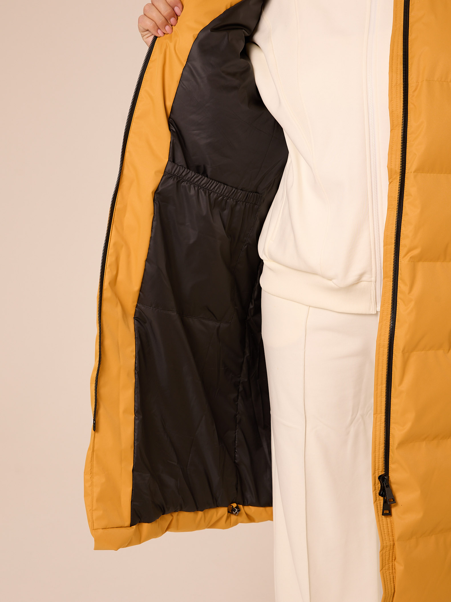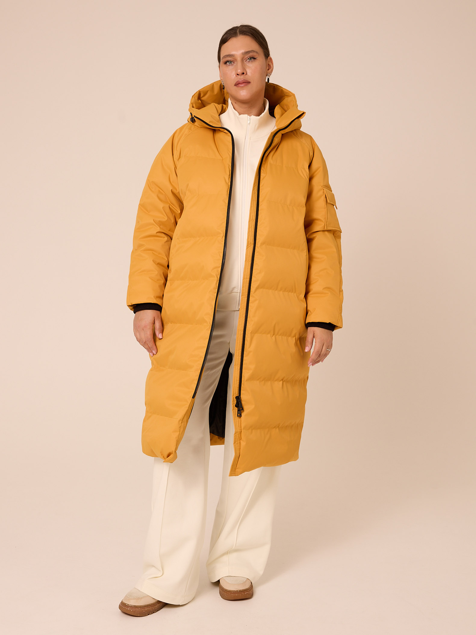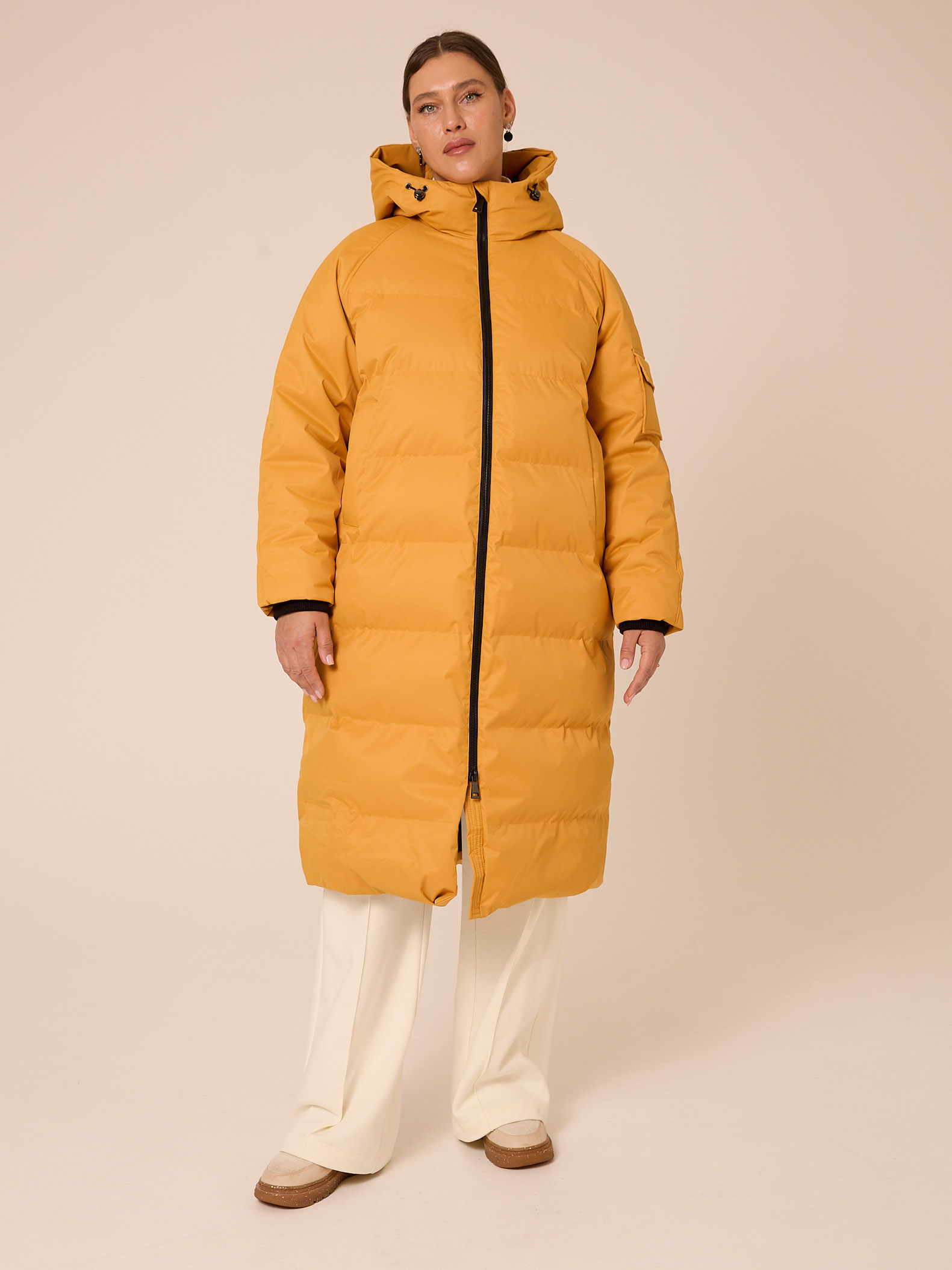 Утеплитель лебяжий синтепух 150-180гр/м2 +термофин 60гр/м2. Пальто прямого кроя, длиной Капюшон втачной с кулиской. Боковые карманы прорезные с листочками. Есть внутренний накладной карман на подкладке. По низу изделия выполнена кулиска с регулируемой резинкой. Пальто застегивается на широкую тракторную молнию. Выполнено из плотной курточной ткани с мембраной, и с водоотталкивающей пропиткой. Цвета: сиреневый, черный, желтый.