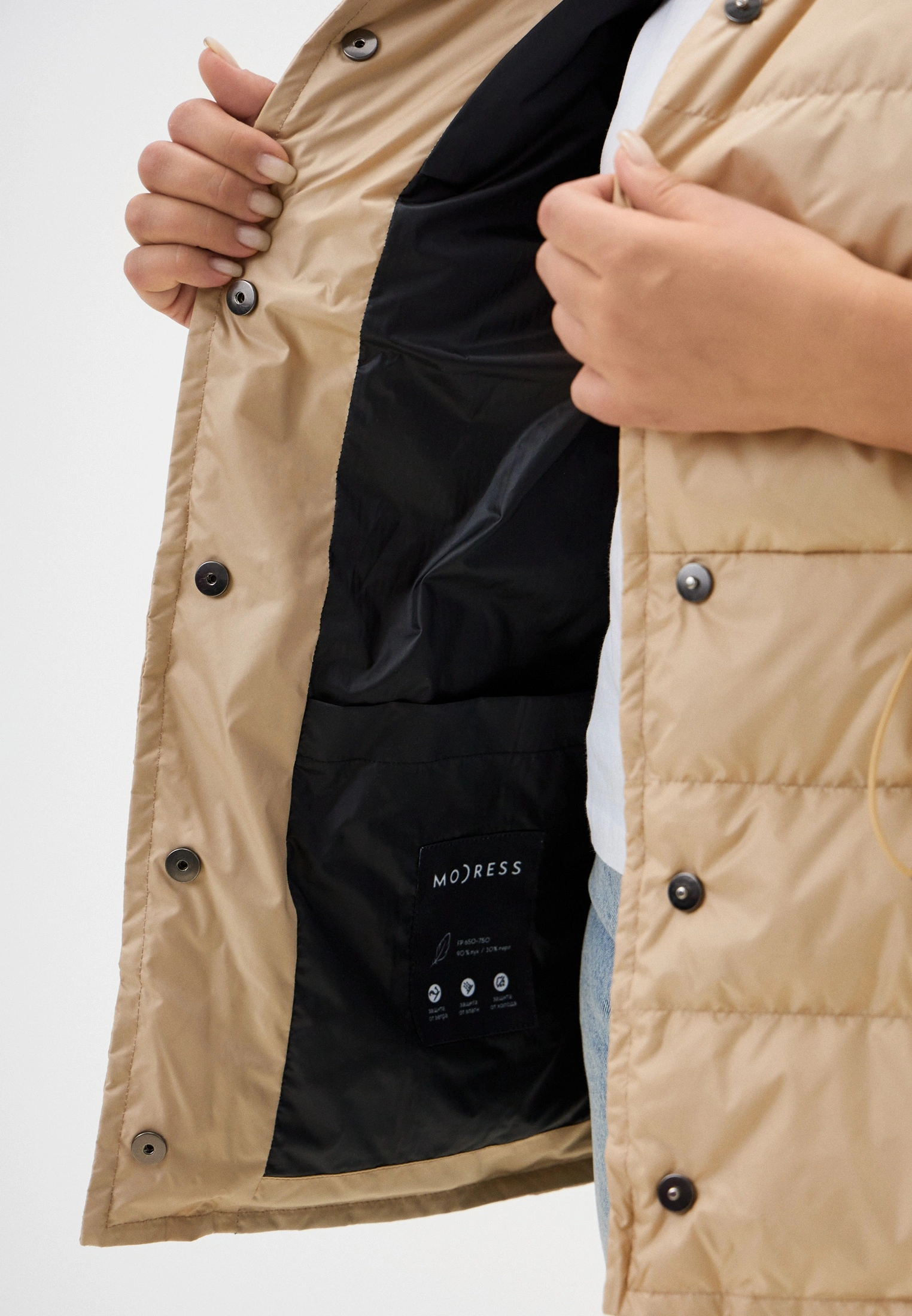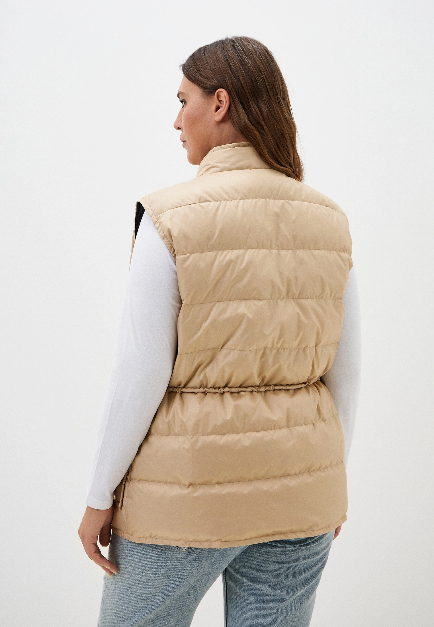 Легкий жилет прямого кроя с кулиской на талии. Воротник-невысокая стойка. Карманы накладные с клапанами. Застегивается жилет на потайные кнопки.