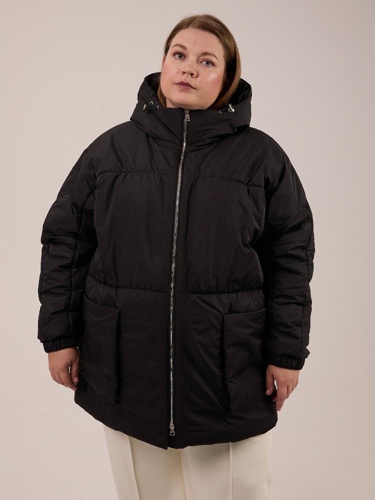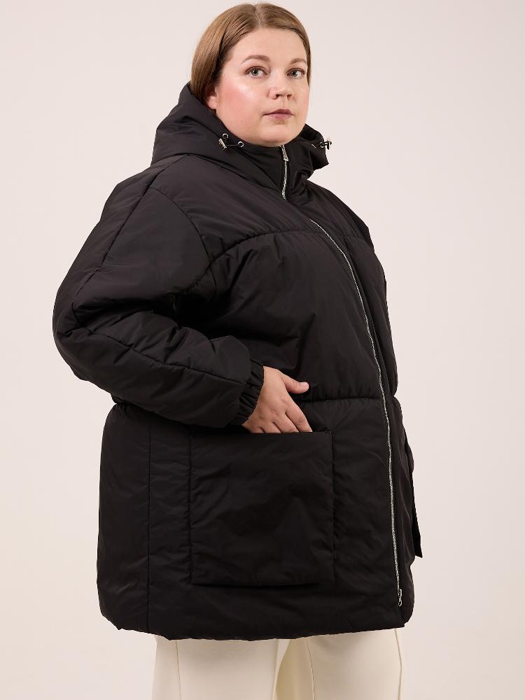 Утеплитель термофин 150гр/м2. Куртка прямая с цельнокроенными рукавами. Капюшон втачной со стойкой и кулиской. Карманы накладные. Манжеты рукавов с эластичной тесьмой внутри. По линии талии, груди, и по рукавам проходит декоративная сборка. Изделие застегивается на металлическую молнию. Выполнено из курточной ткани с водоотталкивающими свойствами в черном и молочном цветах.