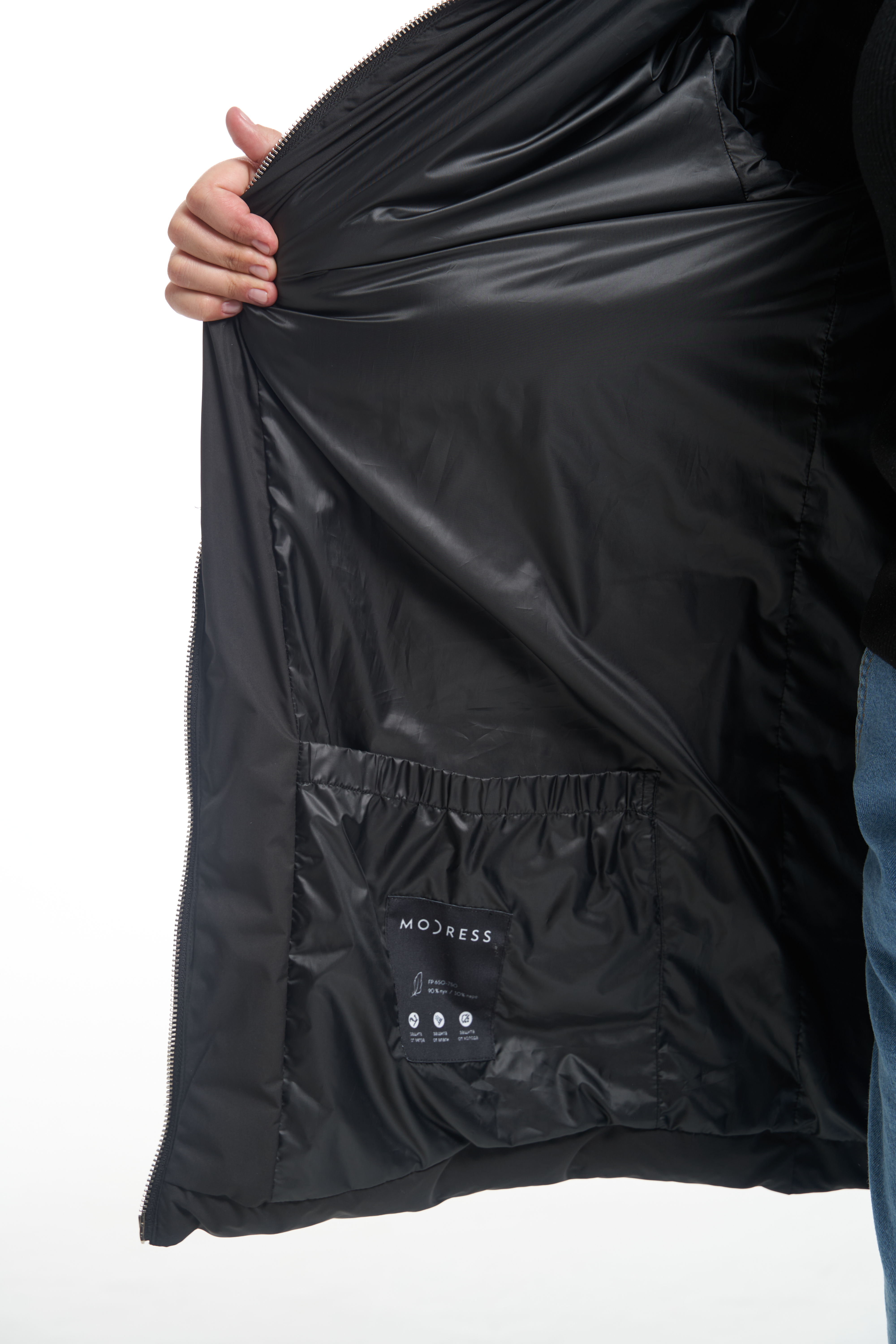 Полиэстер 100%;Утеплитель: Пух - 90%, перо - 10%;Характеристика пух/перо (fill power), куб. дюйм на унцию: 650+(110-120 гр/м2)