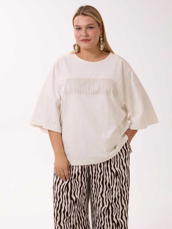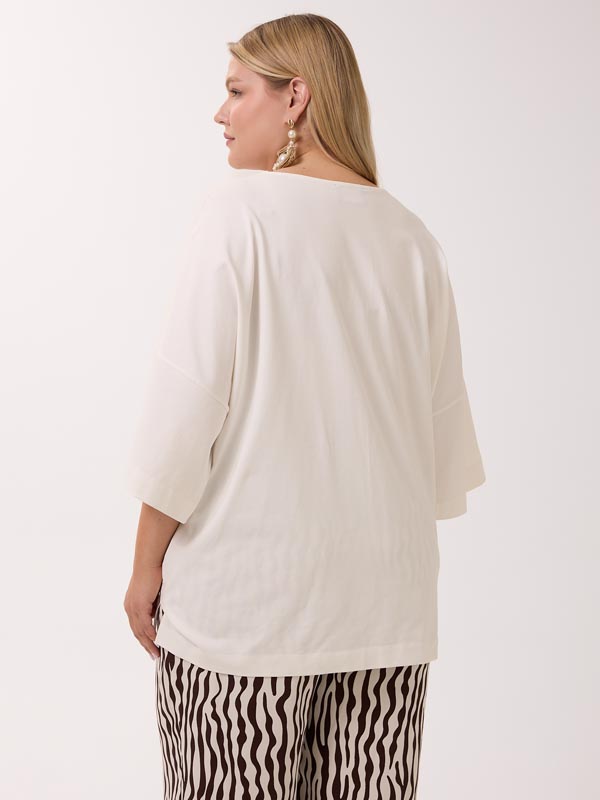Объемный блузон прямого кроя. Вырез горловины круглый. Плечевой