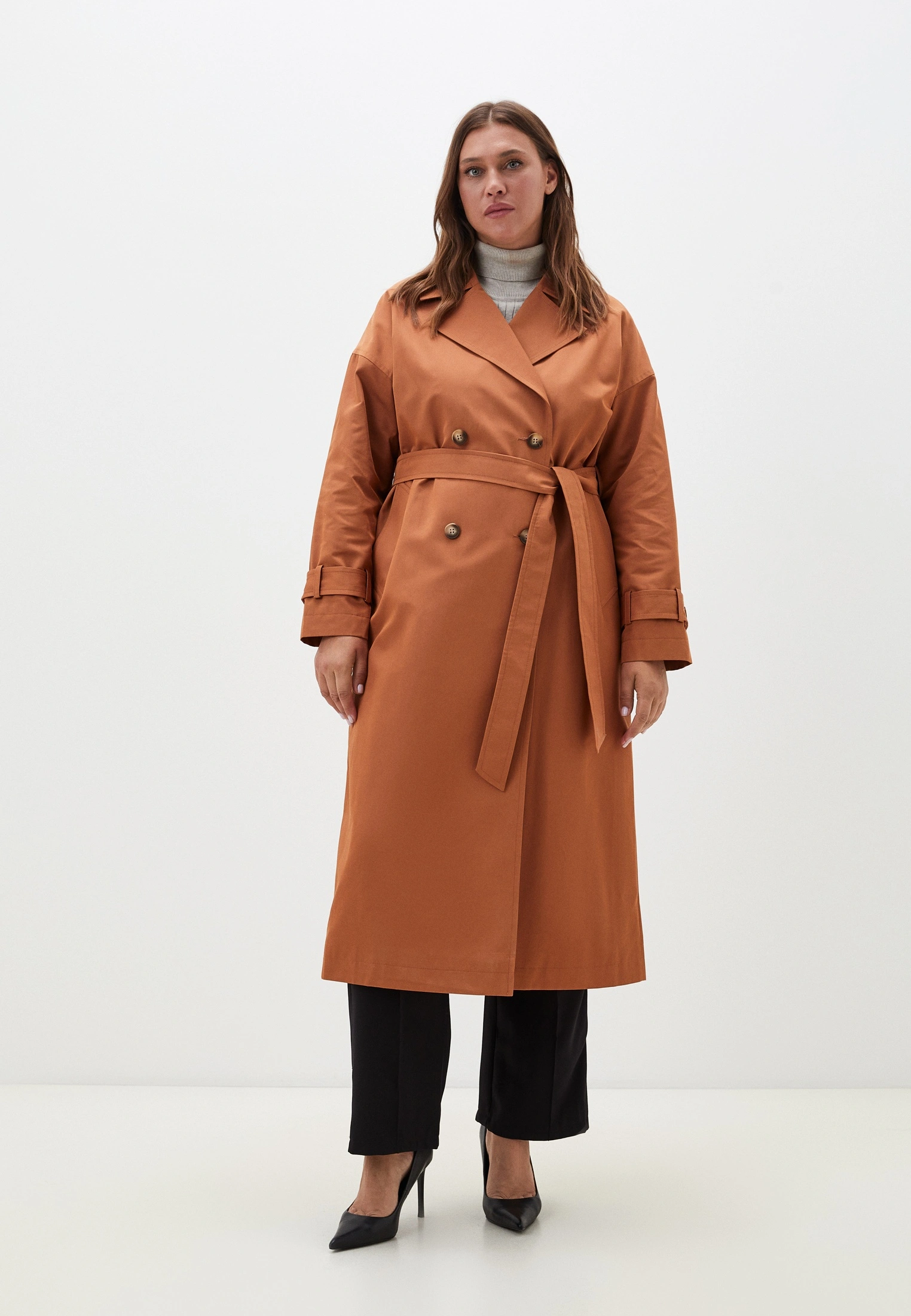 Двубортный тренч свободного кроя с поясом. Воротник широкий с лацканами. Рукава спущенные с патами. Боковые карманы прорезные с листочками. В среднем шве спинки выполнена шлица. Плащ длиной до икр, застегивается на петли и пуговицы. Изделие выполнено из плащевой ткани с высоким содержанием хлопка.
