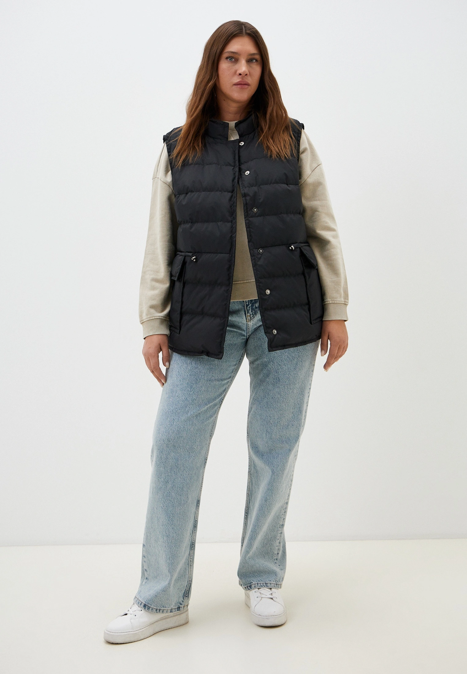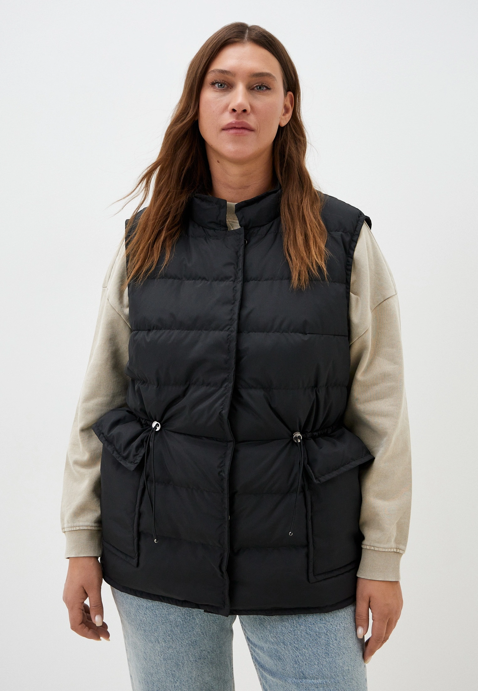 Легкий жилет прямого кроя с кулиской на талии. Воротник-невысокая стойка. Карманы накладные с клапанами. Застегивается жилет на потайные кнопки.