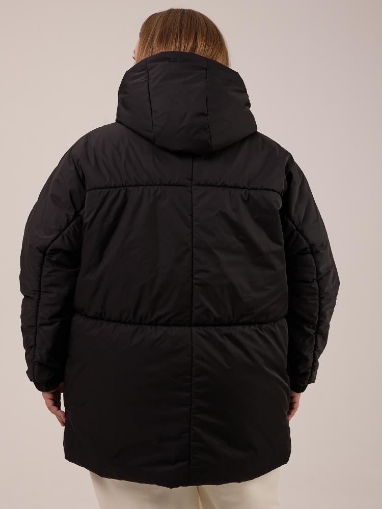 Утеплитель термофин 150гр/м2. Куртка прямая с цельнокроенными рукавами. Капюшон втачной со стойкой и кулиской. Карманы накладные. Манжеты рукавов с эластичной тесьмой внутри. По линии талии, груди, и по рукавам проходит декоративная сборка. Изделие застегивается на металлическую молнию. Выполнено из курточной ткани с водоотталкивающими свойствами в черном и молочном цветах.